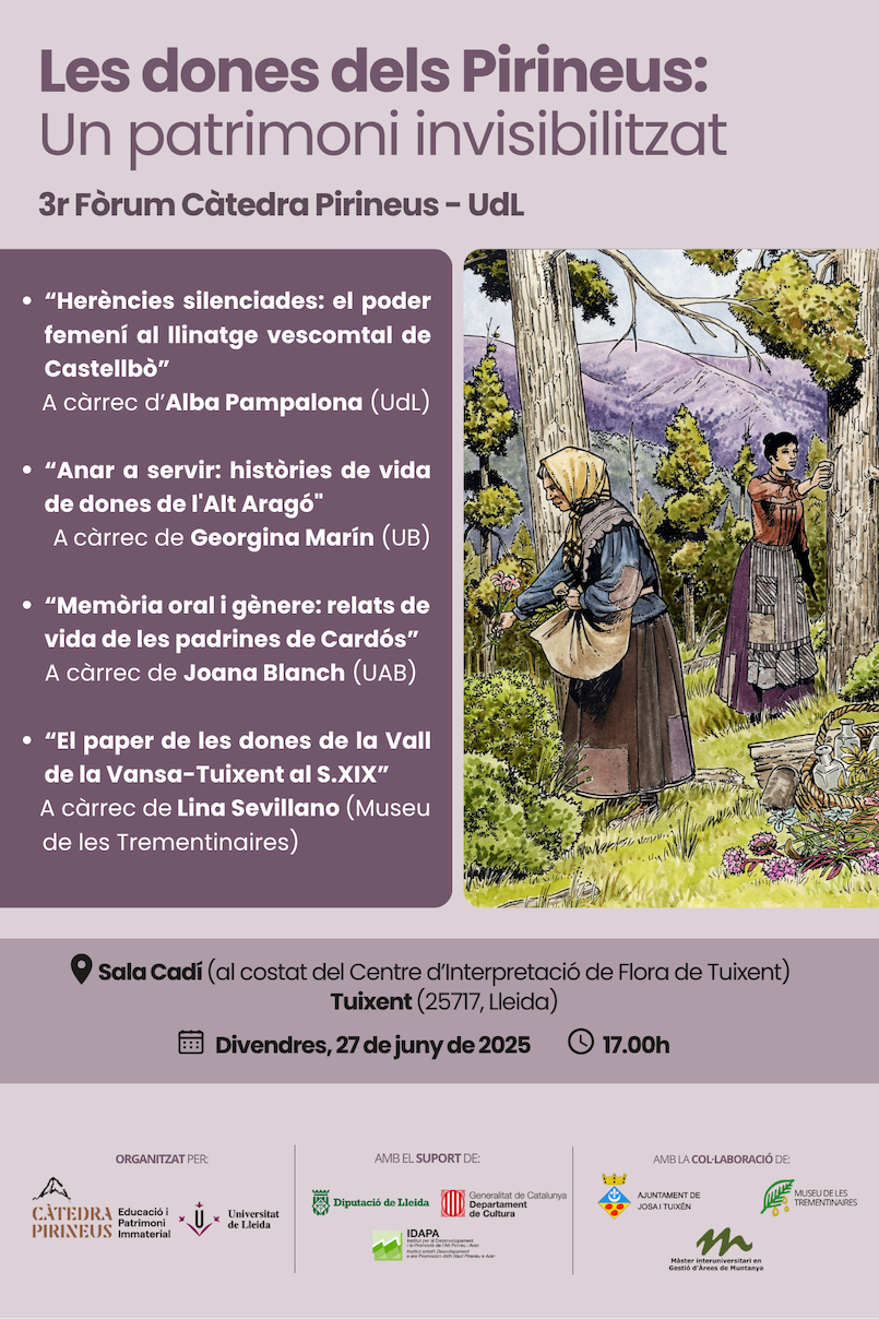 - Calvo-Pobla, T., Fernández, A., Ballesté, M., i Solé-Llussà, A. (2025). Narrativas heredadas: el papel del patrimonio colectivo en la percepción identitaria en la infancia y adolescencia en los Pirineos Catalanes. IV Congreso Internacional de Educación, Patrimonio y Creatividad (EPAC), Soria. Universidad de Valladolid.
